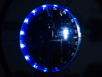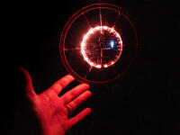 Interactive: Gently touch one of 25 hanging copper “atoms” in this installation to trigger a collision of light.