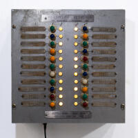 Interactive: Firmly press the colorful buttons to reduce the problem set. One of the buttons is the answer. When you find it, the machine will reset.
