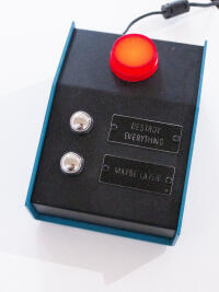 If you press “Destroy Everything,” it uses an internal transducer to vibrate its pedestal or tabletop with the sound of a distant explosion.