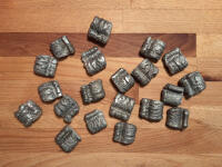 Then I cut the individual peanuts free with hand saws and, as warranted, an angle grinder. Each peanut was left with a few sharp edges, which I removed by hand with files, deburring tools, and other small hand tools.